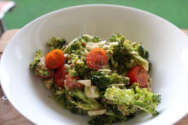 Da das Mandelmus cremig, aber auch etwas zähflüssig ist, entsteht ein interessanter Kontrast zwischen der cremigen Sauce, dem knackigen, kleingeschnittenen Broccoli und den säuerlichen Tomaten.